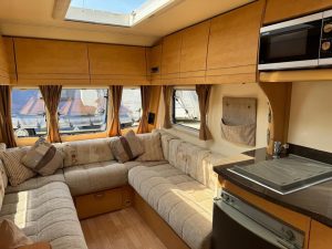 Bailey Olympus 462, it’s got full kitchen area with oven/grill/hob, microwave, 3 way fridge/freezer, gas and electric heating system, beautiful curtains and upholstery, planes and fly screens, awning light, gas bbq point, battery charger, free standing table, large bathroom with shower unit and cassette toilet, Cris registered with 2 sets of keys and all original operating manuals, finance available, part ex welcome, 6 months warranty, nationwide delivery,