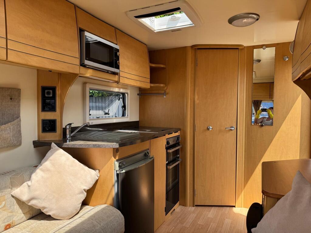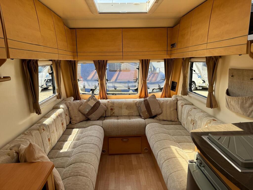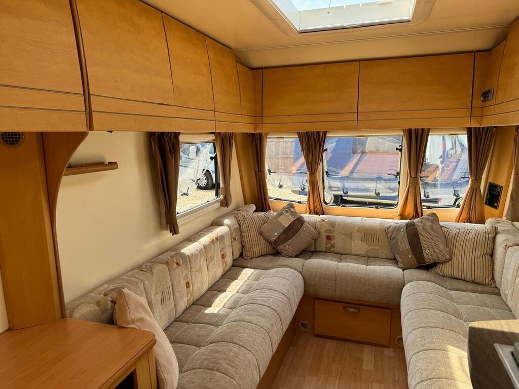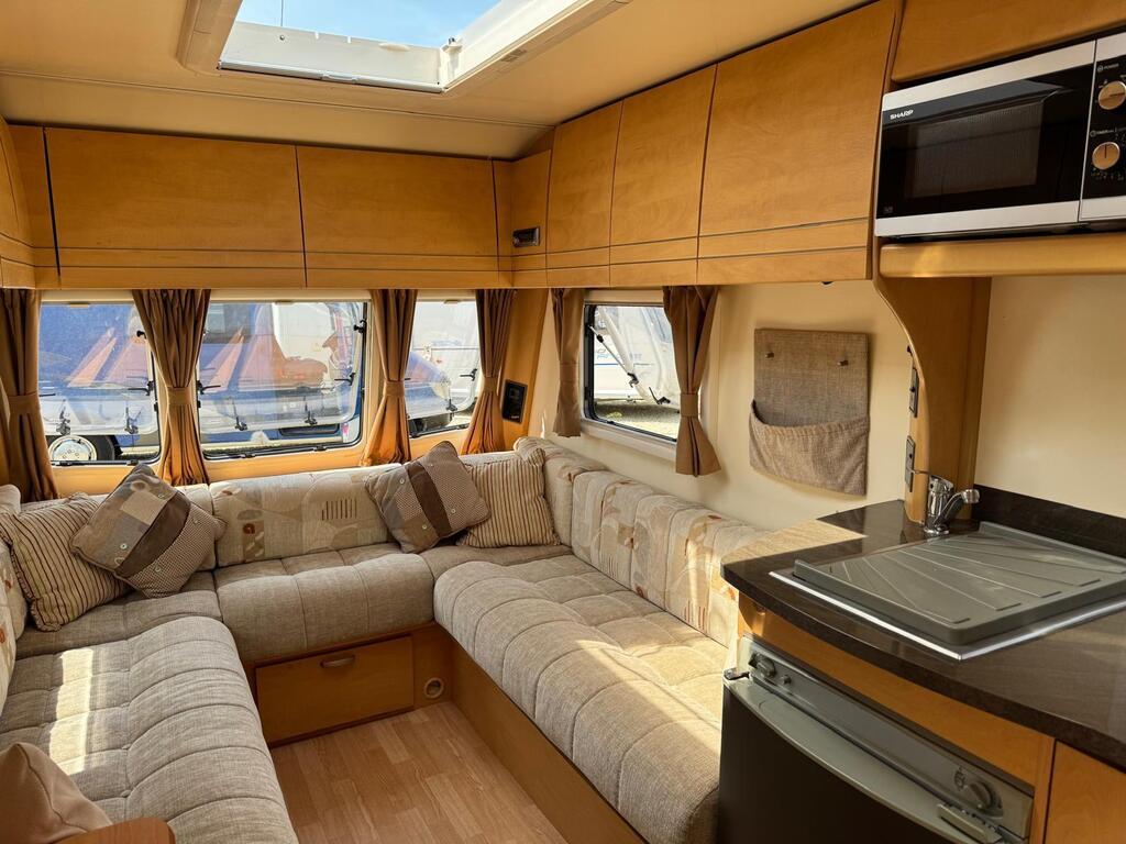 Bailey Olympus 462, it’s got full kitchen area with oven/grill/hob, microwave, 3 way fridge/freezer, gas and electric heating system, beautiful curtains and upholstery, planes and fly screens, awning light, gas bbq point, battery charger, free standing table, large bathroom with shower unit and cassette toilet, Cris registered with 2 sets of keys and all original operating manuals, finance available, part ex welcome, 6 months warranty, nationwide delivery,